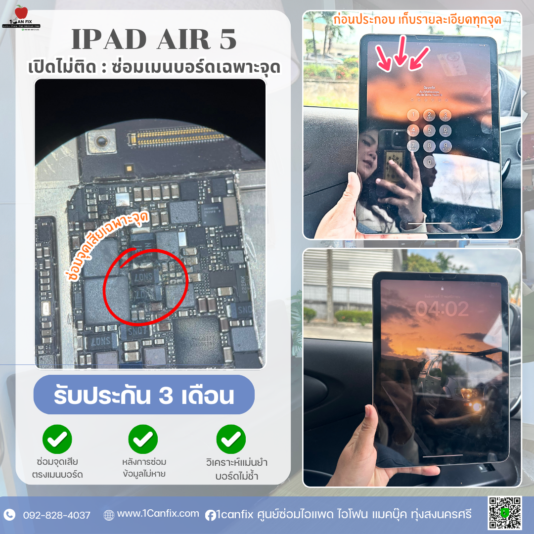 iPad เปิดไม่ติด ชาร์จไฟไม่เข้า ค้างโลโก้ รีสตาร์ท Wifi ใช้งานไม่ได้ เครื่องโดนน้ำ เครื่องตกบอดี้งอ หน้าจอแตก รับเปลี่ยนหน้าจอ iPad ทุกรุ่น ทั้งจอยกใบ และลอกกระจก เปลี่ยนทัชสกัน เปลี่ยนแบตเตอรี่ แบตบวมดันจอ